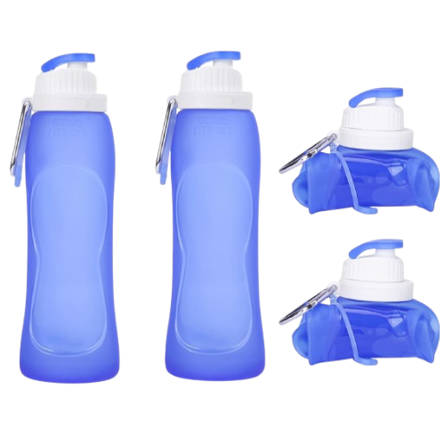 • Lightweight and Portable: These 17 oz (500 mL) collapsible water bottles are about 22 x 7 x 7 cm. The folding size of these water bottles are 10 x 9 x 5 cm. Lightweight (80 g) is easy carry and store. And it comes with a hook, which is convenient to hang on your backpack. It helps you hydrate at any time and any where.