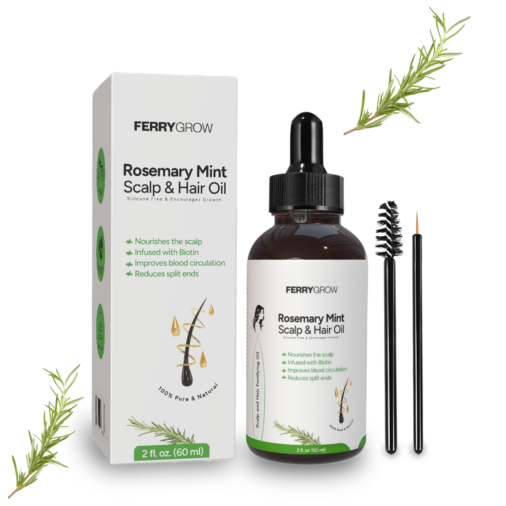 Transform your hair with the nourishing power of FerryGrow Rosemary Mint Scalp & Hair Oil and enjoy healthier, shinier, and more vibrant hair from root to tip.